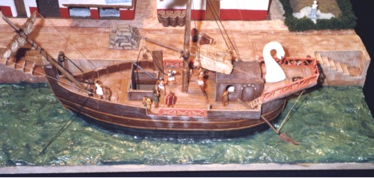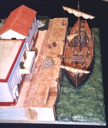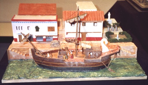 Die Bilder zeigen ein in Arbeit befindliches Diorama von Andreas Lehner mit dem antiken römischen Schwanenhals-Handelsschiff von KF-Miniaturen.