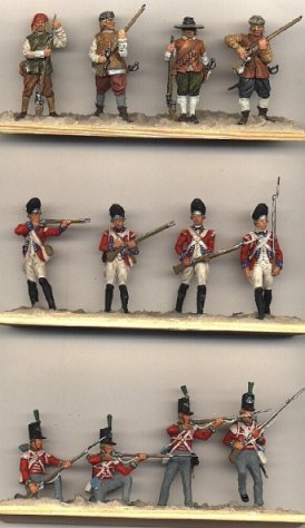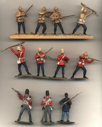 Links: Die 4 Figurenposen aus dem Set 15, Britische Infanterie bei Islandwana.