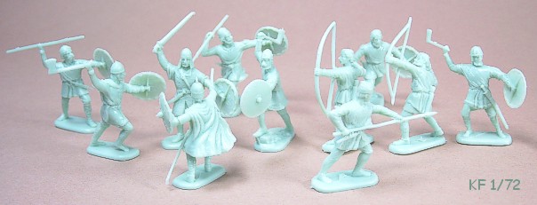 Oben: Detailbeispiel Die Packung enthält 50 Figuren in 13 verschiedenen Posen, die Gußfarbe ist mintfarben/helltürkis.