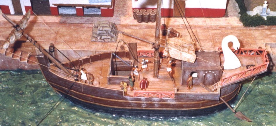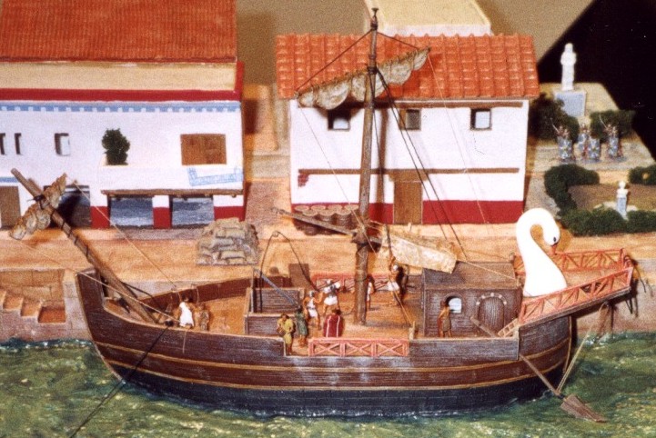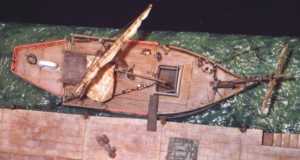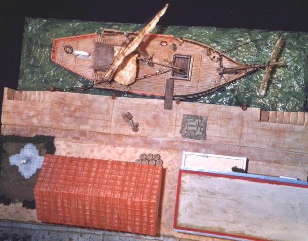 Die Bilder zeigen ein in Arbeit befindliches Diorama von Andreas Lehner mit dem antiken römischen Schwanenhals-Handelsschiff von KF-Miniaturen.