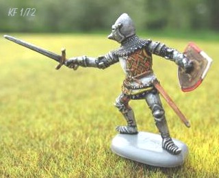 Bei den gezeigten Figuren handelt es sich um 1/72 Französische Ritter zu Fuß des Hundertjährigen Krieges von REVELL. Die Bemalung wurde mit Enamel-Modellbaufarben wie ITALERI TESTORS und HUMBROL vorgenommen. Inzwischen verwende ich häufiger Acrylfarben wie z.B. CITADEL und VALLEJO.