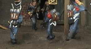 Die Figuren sind sehr dynamisch, sowohl die Art-Figuren wie auch die Strelets. Die Bilder konnte ich aus dieser Perspektive nur so machen, bevor die Außenmauer mit großem Tor dazukam. Danach sind die Bilder aus der Froschperspektive nur noch durch dieses Tor möglich.
